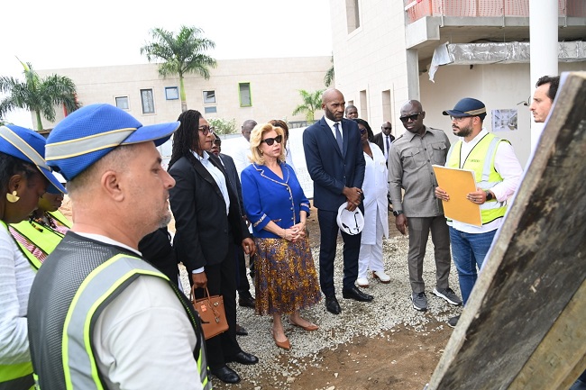 La Première Dame, Dominique Ouattara, présidente de la Fondation Children of Africa, a effectué ce jeudi 25 septembre 2025 une visite sur le chantier de la future extension de chirurgie cardiaque pédiatrique de l’Hôpital Mère-Enfant (HME) de Bingerville.
