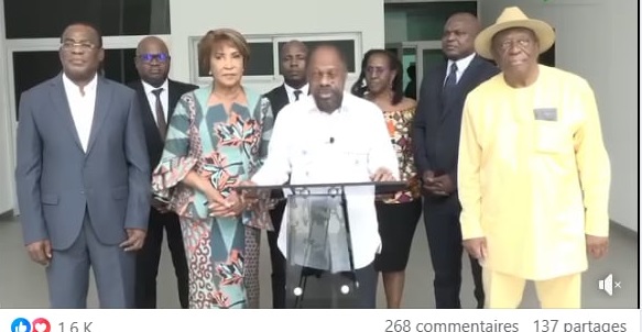 (…) « Nous avons reçu, ce matin (NDLR lundi 6 octobre 2025), nous Front commun composés du PDCI-RDA et le Parti des Peuples Africains (PPA-CI), nous avons eu l’honneur de discuter avec les frères et sœurs de Côte d’Ivoire représentés ici (NDLR siège du PDCI) par la Coalition de l’Alternance Pacifique (CAP-CI), par les candidats à l’élection présidentielle de 2025 non retenus et par d’autres leaders d’opinions. Nous les avons rencontrés pour discuter de la vie sociopolitique de Côte d’Ivoire.et ce travail, nous le faisons, parce que cela fait partie des différentes rencontres que nous effectuons dans ce cadre-là. Nous avons donc discuté de cette situation sociopolitique en Côte d’Ivoire. Les discussions ont été fructueuses et fraternelles. Nous sommes tous engagés pour la même vision pour notre pays. Nous nous sommes donc retrouvés, ce jour (NDLR 6 octobre 2025), et les discussions vont continuer les jours à venir. Pour l’heure, il est bon que les Ivoiriens et les Ivoiriennes comprennent que des enfants sont au travail pour réfléchir sur la vie de la Nation et trouver des solutions idoines. C’est pour cela que nous nous sommes retrouvés et je voudrais encore les remercier d’avoir répondu à notre invitation.