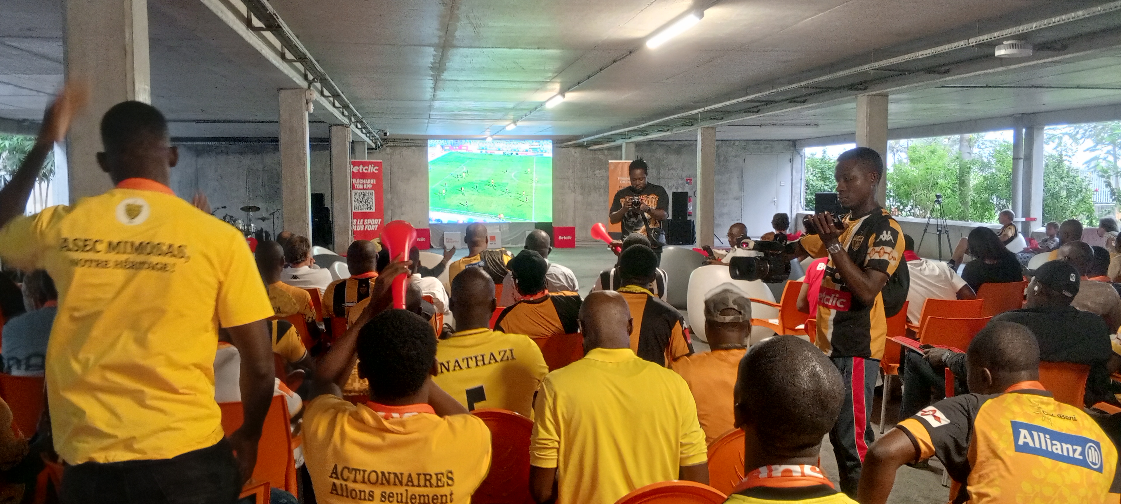 Ce vendredi 22 novembre, de nombreux supporters de l’Asec Mimosas se sont retrouvés à Orange Village, à la Riviera Golf, pour vivre ensemble la finale de la Ligue des Champions Féminine de la CAF. Bien que la rencontre se soit disputée en Égypte, les Jaunes et Noirs ont bénéficié du soutien chaleureux de leurs fans restés à Abidjan, venus en nombre encourager leur équipe.